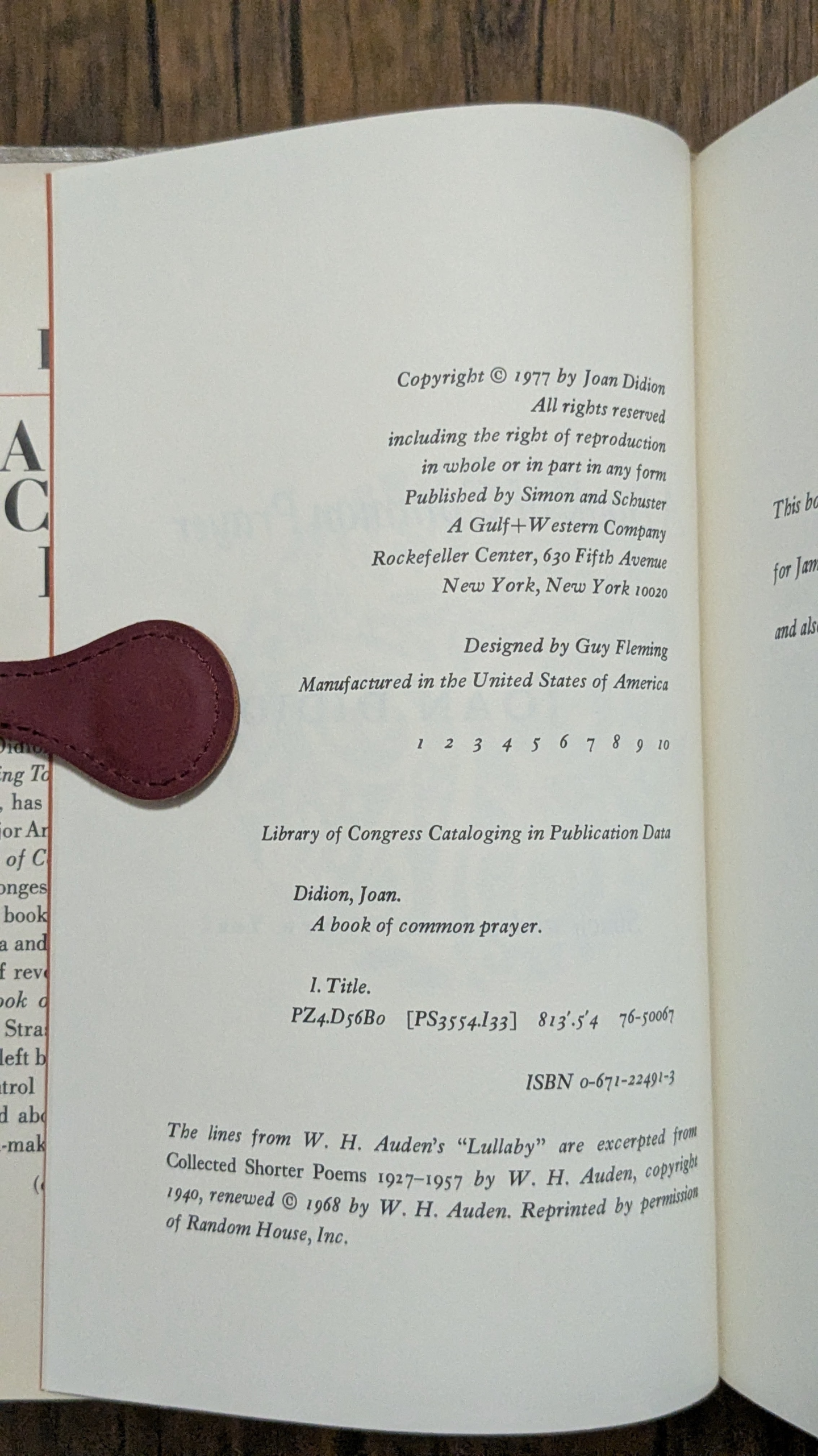 DIDION, Joan. A Book of Common Prayer. New York: Simon and Schuster, 1977.