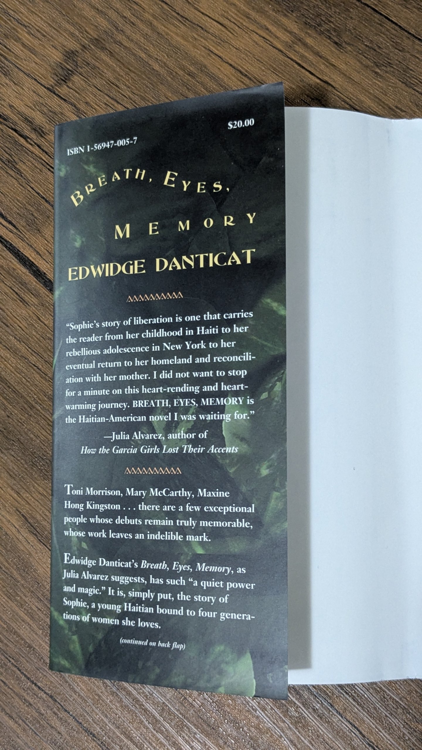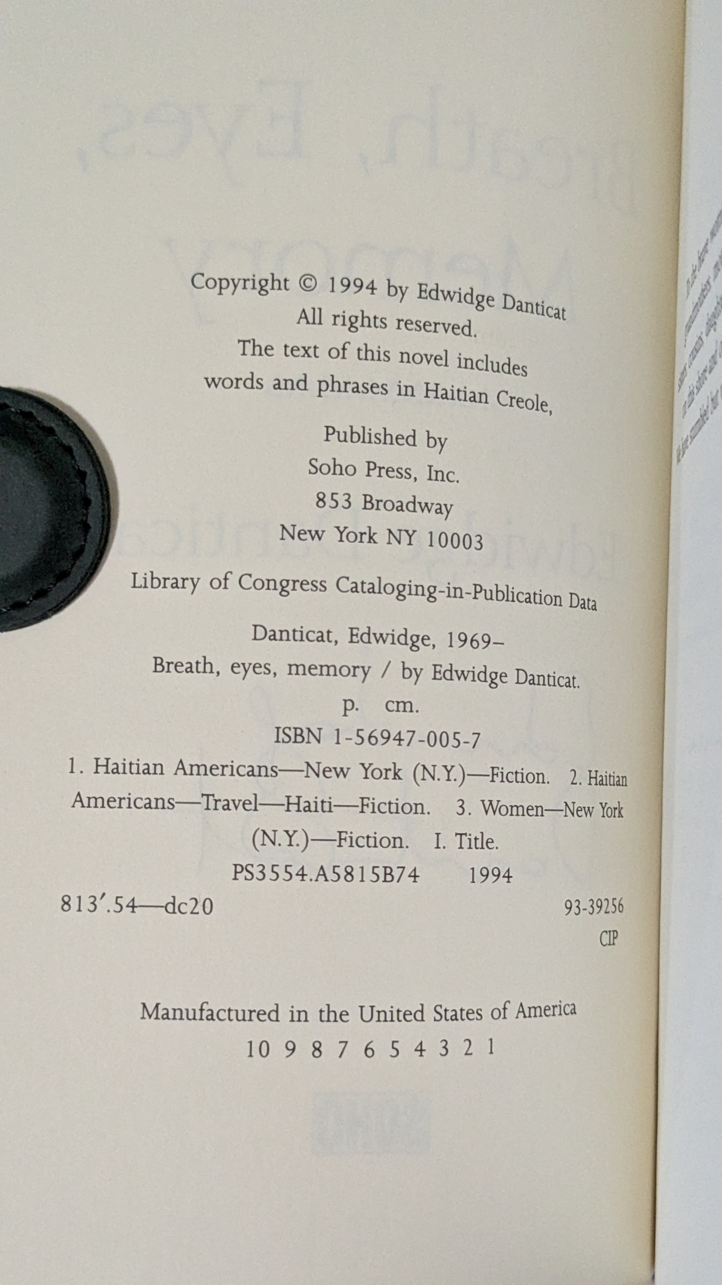DANTICAT, Edwidge. Breath, Eyes, Memory. New York: Soho Press, 1994.