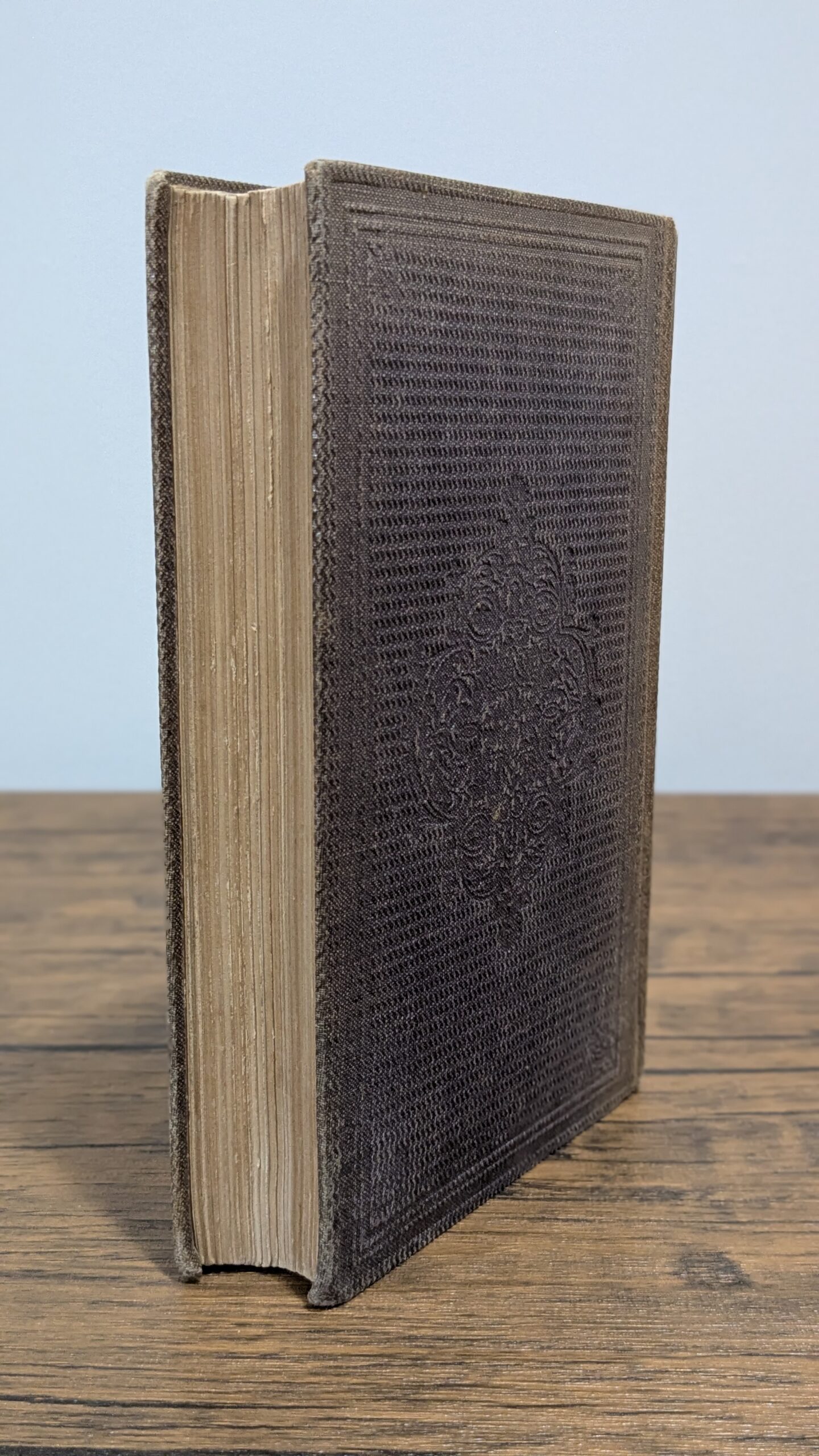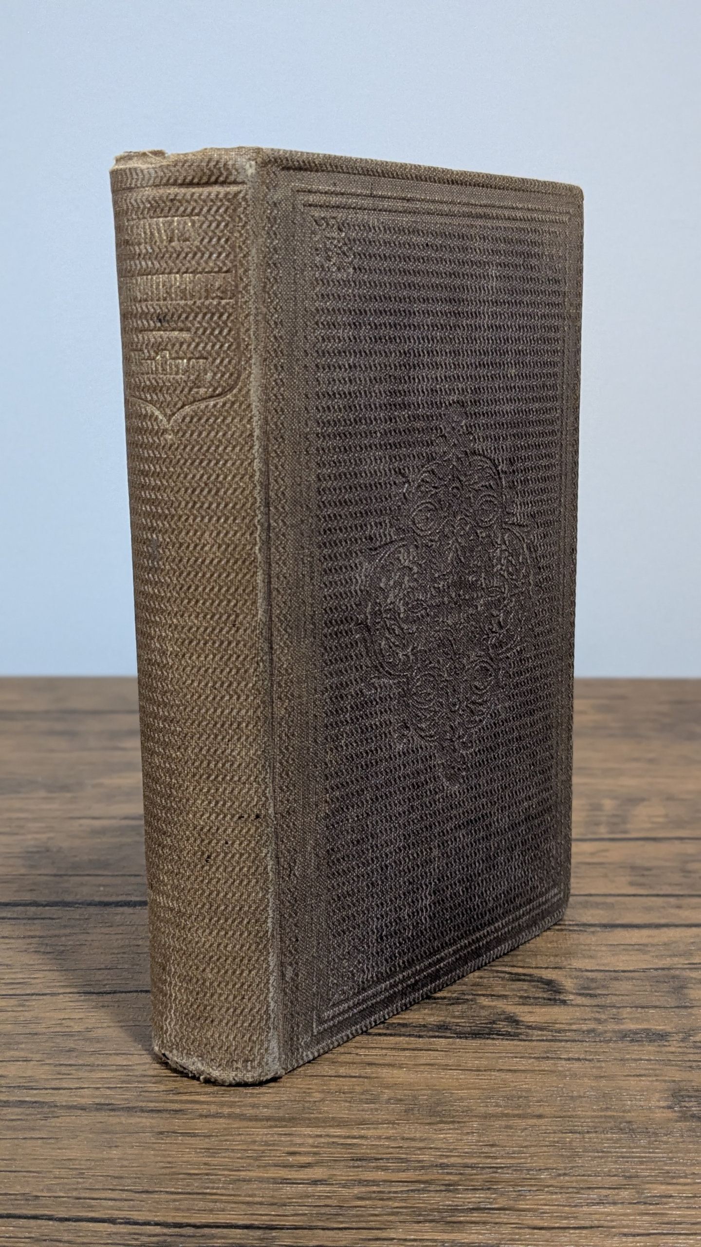 First Edition. Second Printing. 8vo. 18 cm tall. 369 pages. Publisher’s full brown cloth, boards stamped in blind, gilt lettering to spine. Second edition (so stated on title page; actually the second printing of the first edition from the original stereotype plates). Colby, “Bibliographical Notes,” 6. Near Fine. Neat contemporary ownership inscription (“Miss Lizzie Wilson”) in a fine cursive hand on blank prelim. Moderate fading to the cloth. Moderate wear to bottom board corners. Mild wear to top board corners. Mild wear to spine ends. Small bookseller’s ticket of Stratford & Green on rear pastedown.