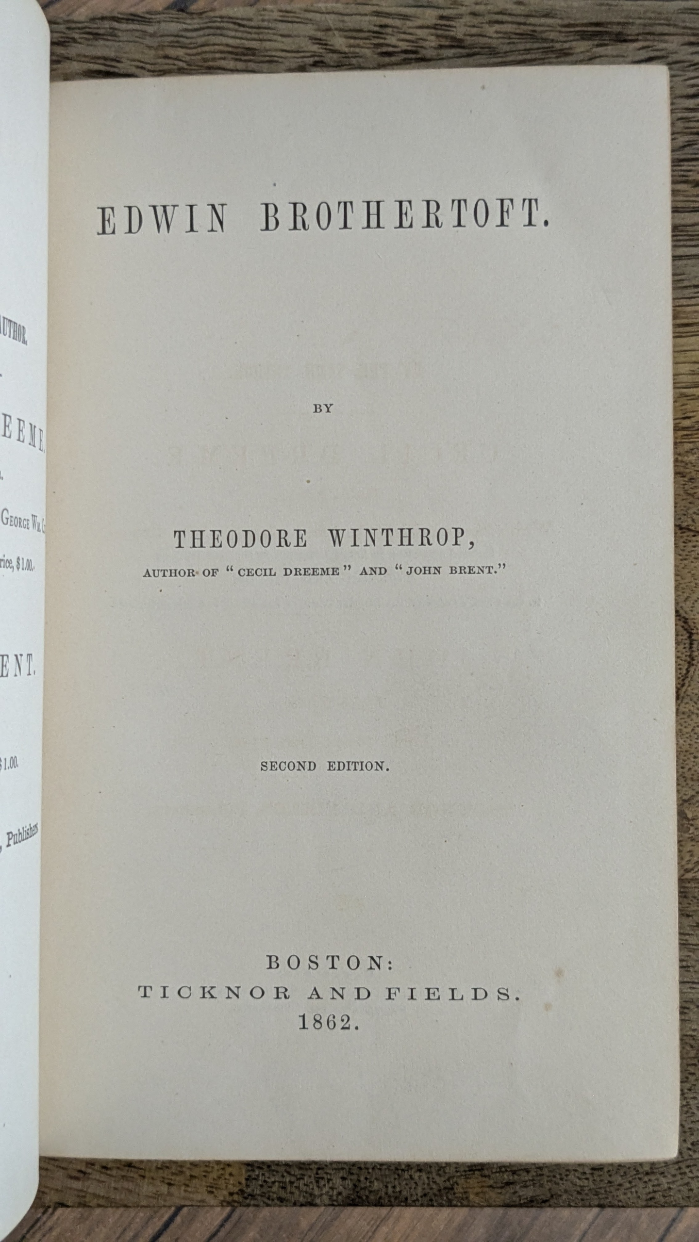 Edwin Brothertoft (1862) — Theodore Winthrop — First Edition | Second Printing