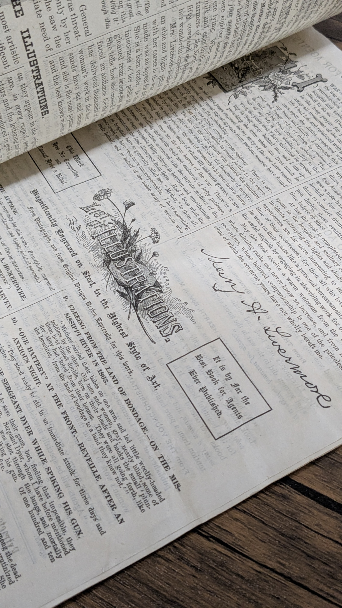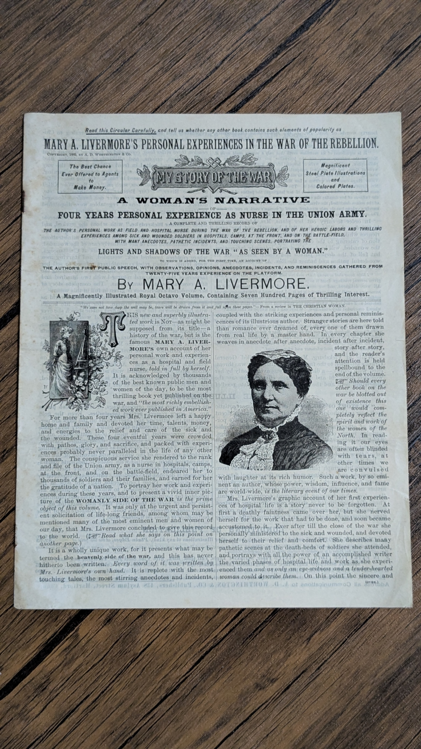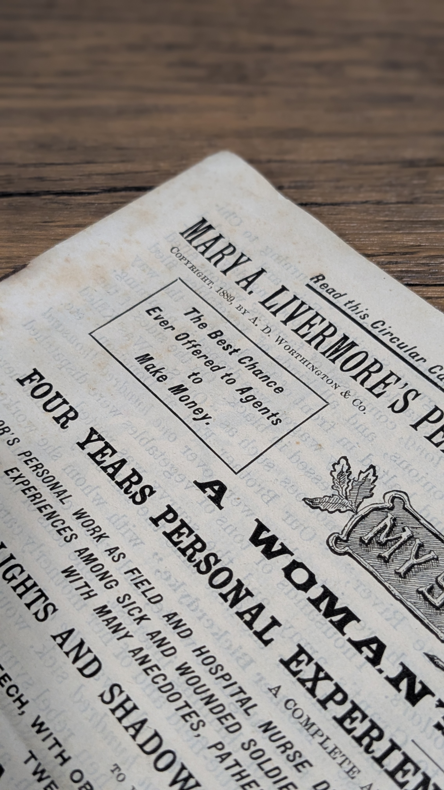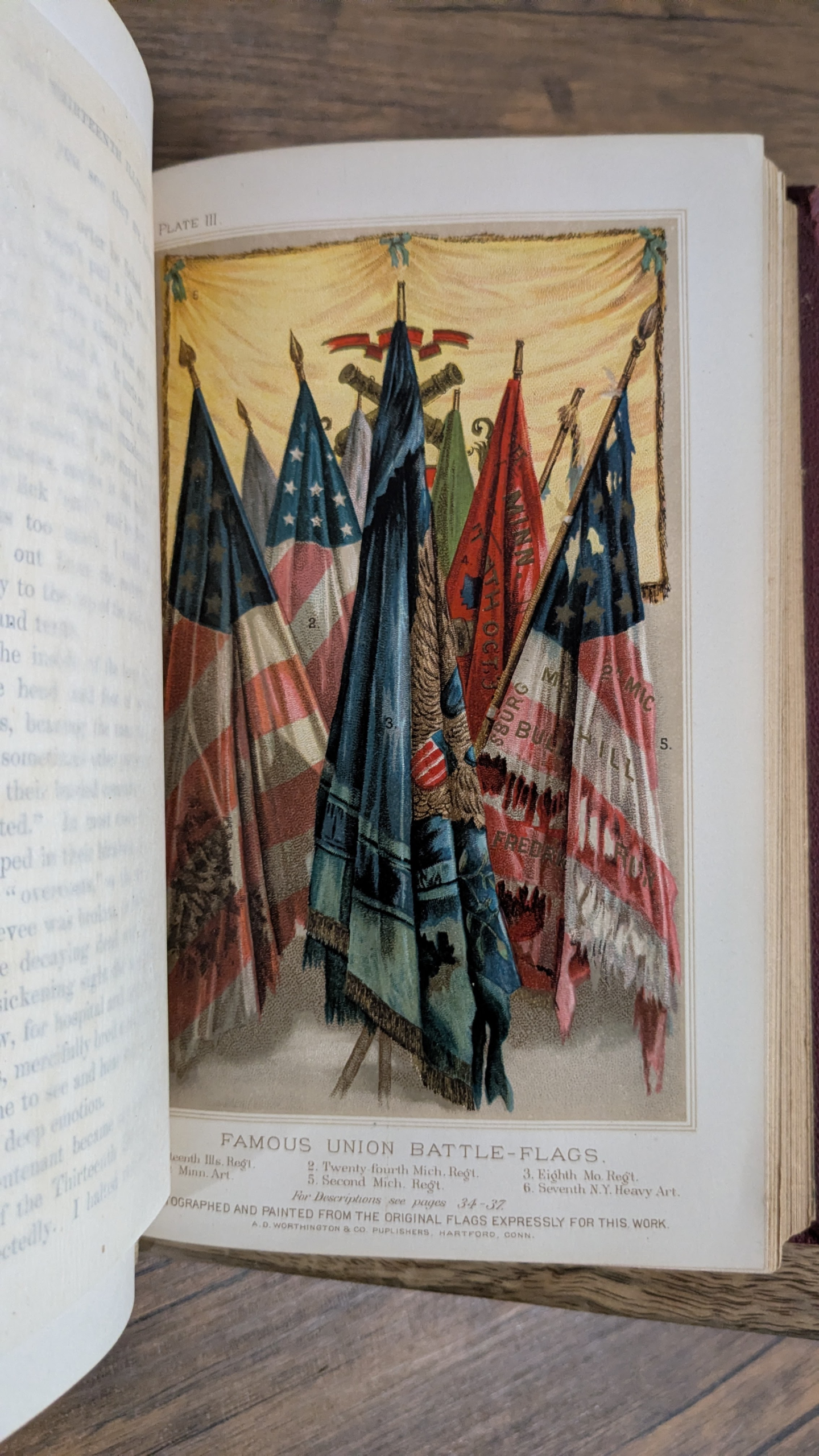 - Mary Livermore’s Civil War memoir of service with the U.S. Sanitary Commission, first published by A.D. Worthington in 1888 and handsomely produced with steel-engraved portraits and chromolithograph flag plates.