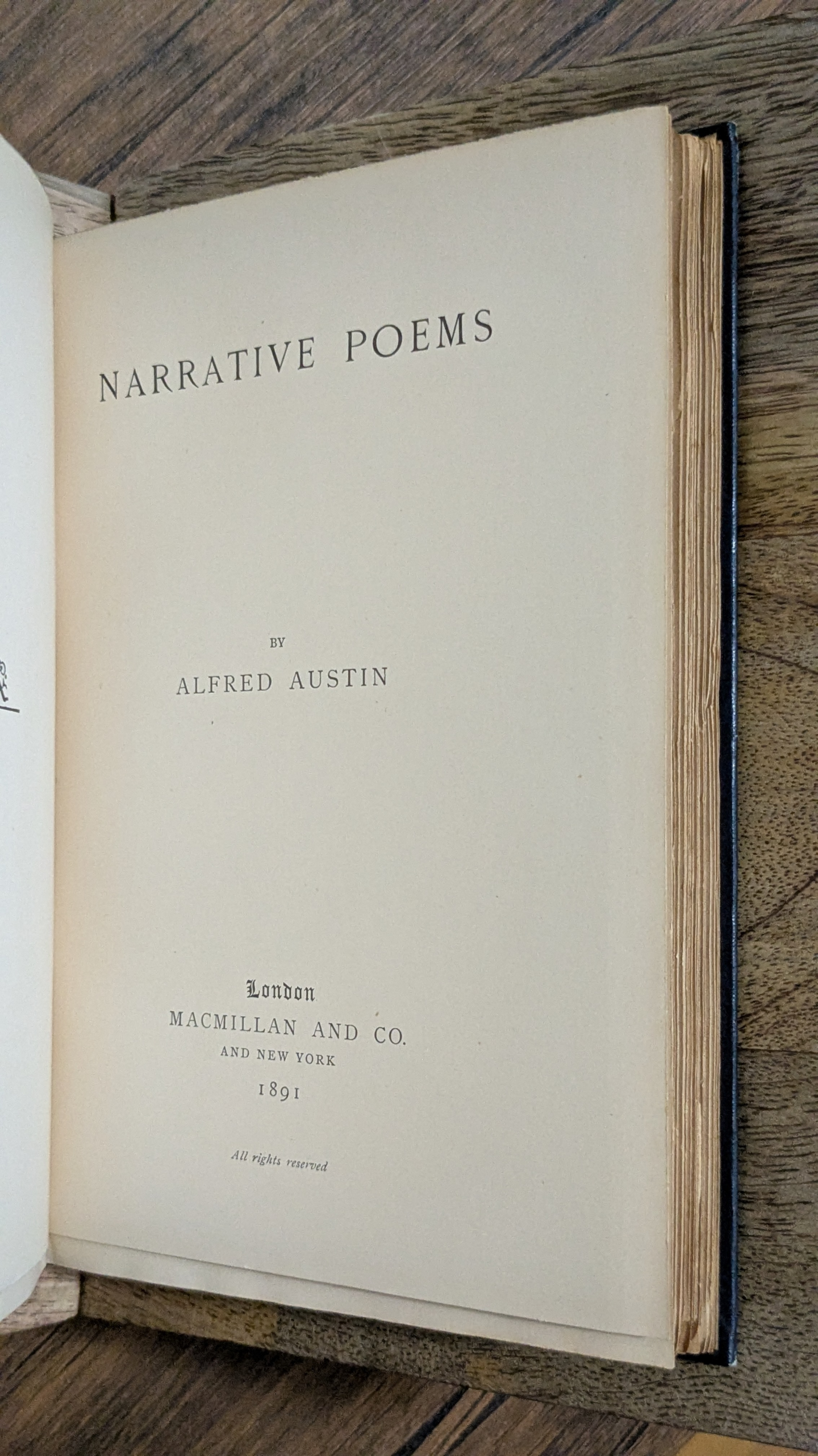 AUSTIN, Alfred. Narrative Poems. London and New York: Macmillan and Co., 1891.