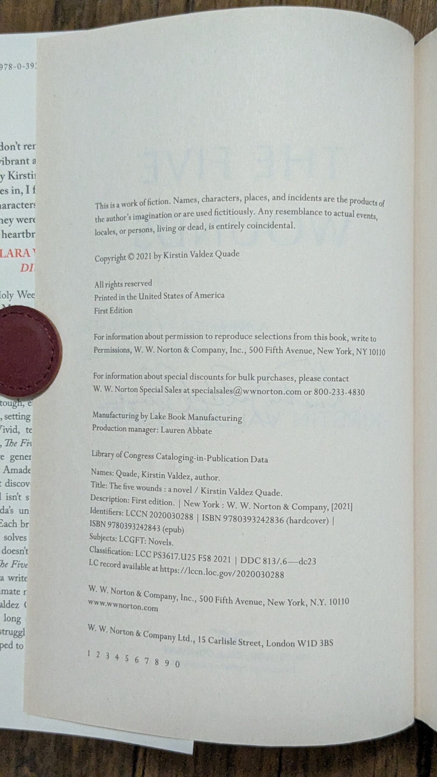 QUADE, Kirstin Valdez. The Five Wounds. New York: W. W. Norton & Company, 2021.
